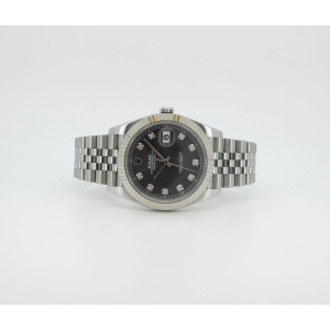 Een prachtige Rolex Datejust 41 ref. 126334 met de exclusieve rhodium wijzerplaat met diamanten indexen. Dit model combineert klassieke elegantie met sportieve luxe en is één van de meest geliefde configuraties binnen de Datejust-lijn.